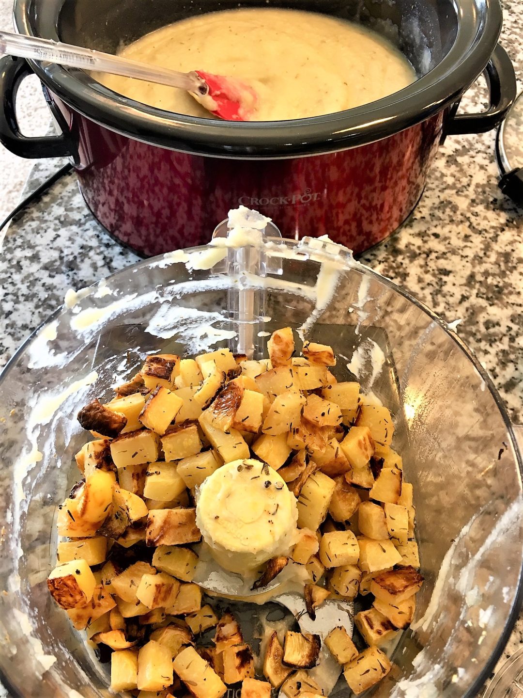 • Add the steamed sweet potato, avocado, bone broth, spices and any remaining oil to the food processor and blend to a desired consistency. I like mine extra creamy so I pureed for a while.